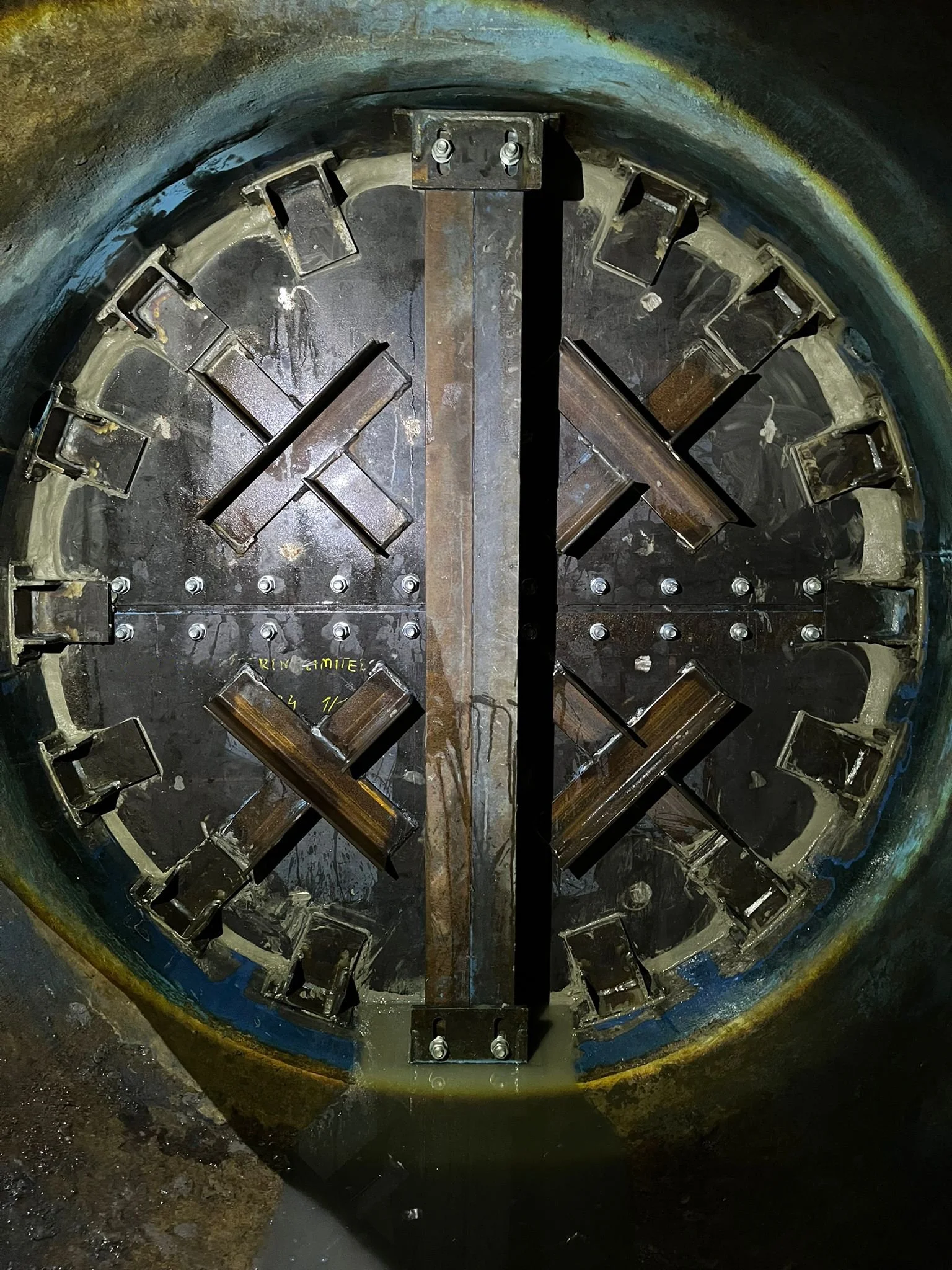 This wasn’t a standard installation. The access was extremely limited, and the working environment presented significant challenges for both the engineering and confined space teams. To overcome these obstacles, our in-house fabrication department developed a modular isolation plate system specifically tailored for this task. Designed in sections, the plate could be safely transported through restricted entry points and assembled in situ by our experienced dive team.